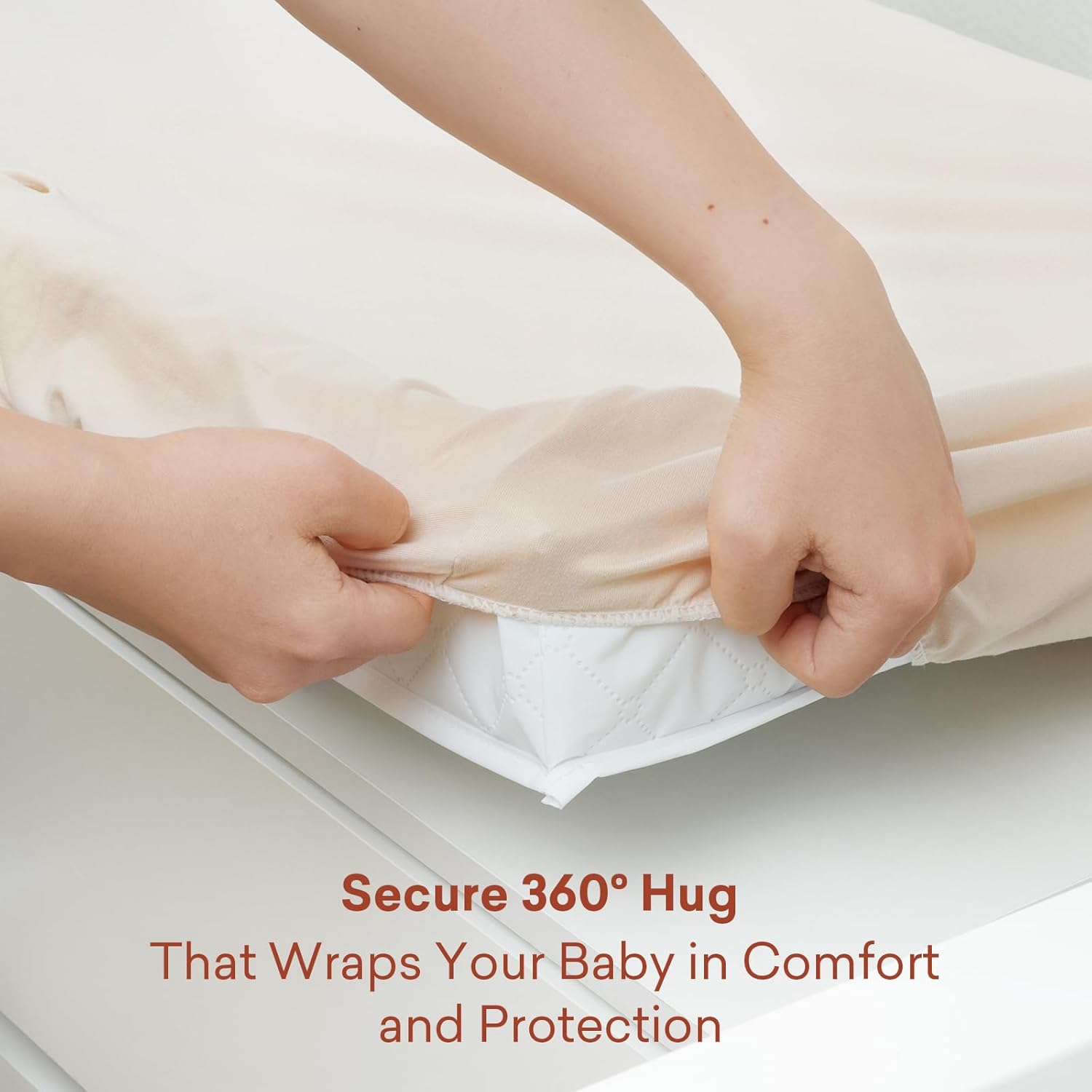 - ๐๐๐ซ๐๐๐๐ญ ๐ ๐ข๐ญ ๐๐จ๐ซ ๐๐ญ๐๐ง๐๐๐ซ๐ ๐๐ก๐๐ง๐ ๐ข๐ง๐ ๐๐๐๐ฌ: Designed to fit most standard-sized changing pads (32" x 16"), these fitted covers offer a secure and snug fit. The elastic edges ensure they stay in place, while built-in openings for safety straps provide added security and convenience for your babyโs safety during every diaper change.