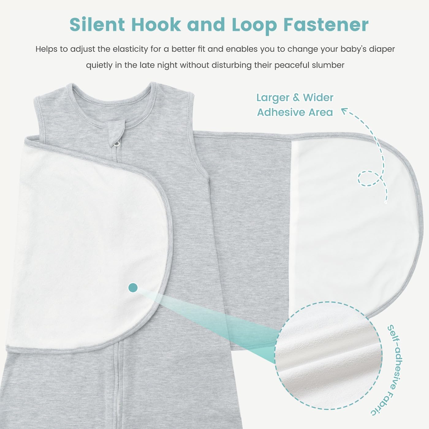 - Ultra-Soft & Noise-Free: The baby swaddle is made from 100% premium cotton with 1.0 tog, which is ideal for temperatures of 68-75°F (20-24°C). Quiet self-stick wrap secures snug fit without crinkling, ensuring peaceful all-night sleep