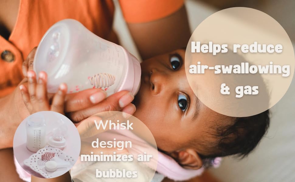 - IMPROVED MIXING : Eliminate foamy bubbles which cause gas in a babies stomach with the baby bottle shakerball. The added number of spirals and thickness reduce froth greatly