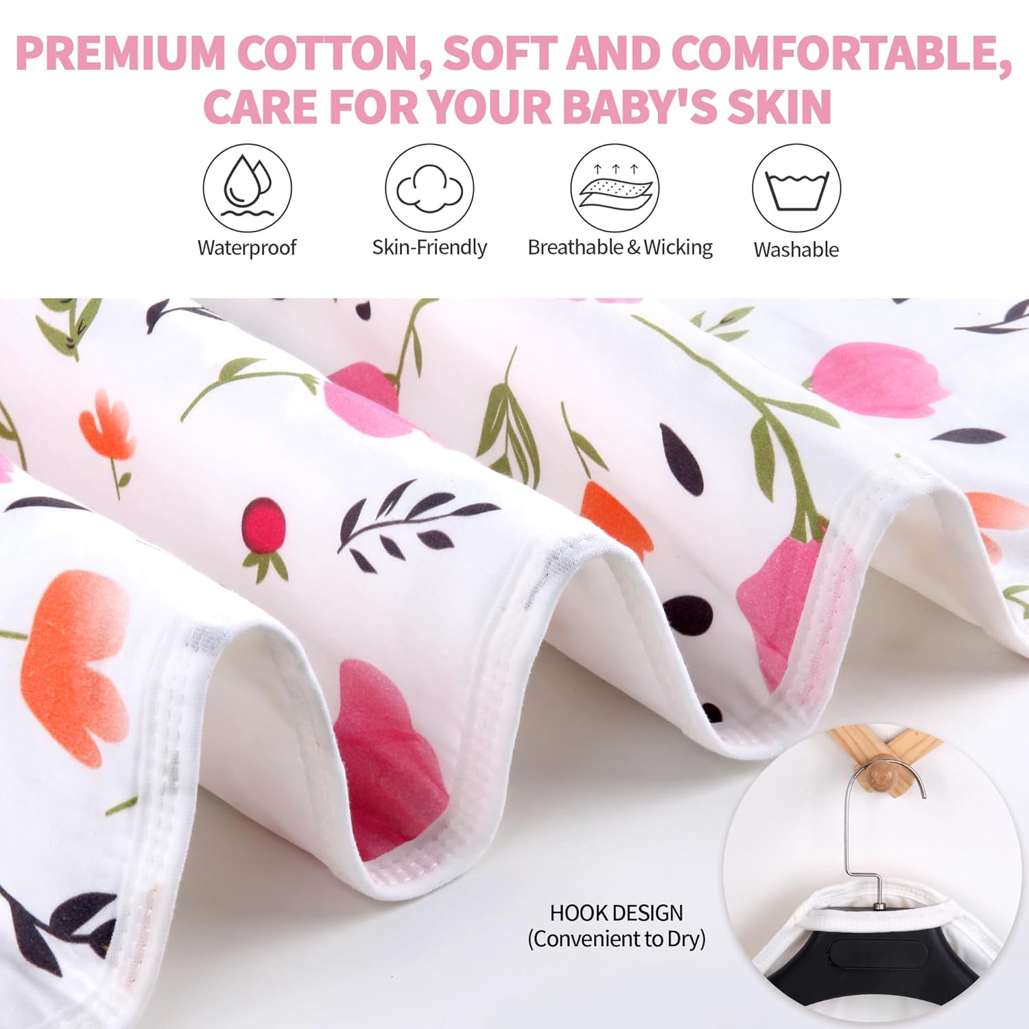 Diaper Changing Pads for Baby, Flower Change Mat, 3Layers Waterproof Change Pad Foldable Absorbent Mats for Women, Reusable Incontinence Underpads for Patient 24''x30'' (Purple Flower)
