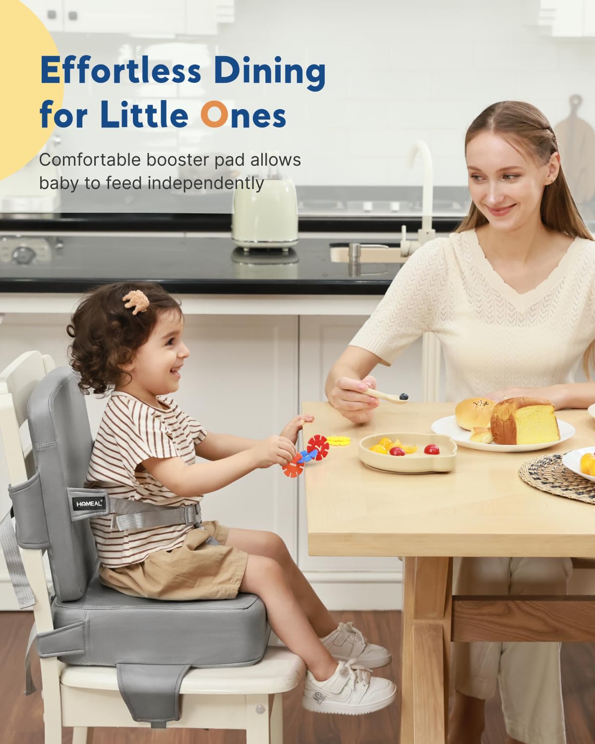 HOMEAL Booster Seat for Kitchen Chair - Compact Toddler Dining Seat with Easy-Install Straps & Wipeable Surface - Breathable Fabric Booster Seat for Table - Light Gray