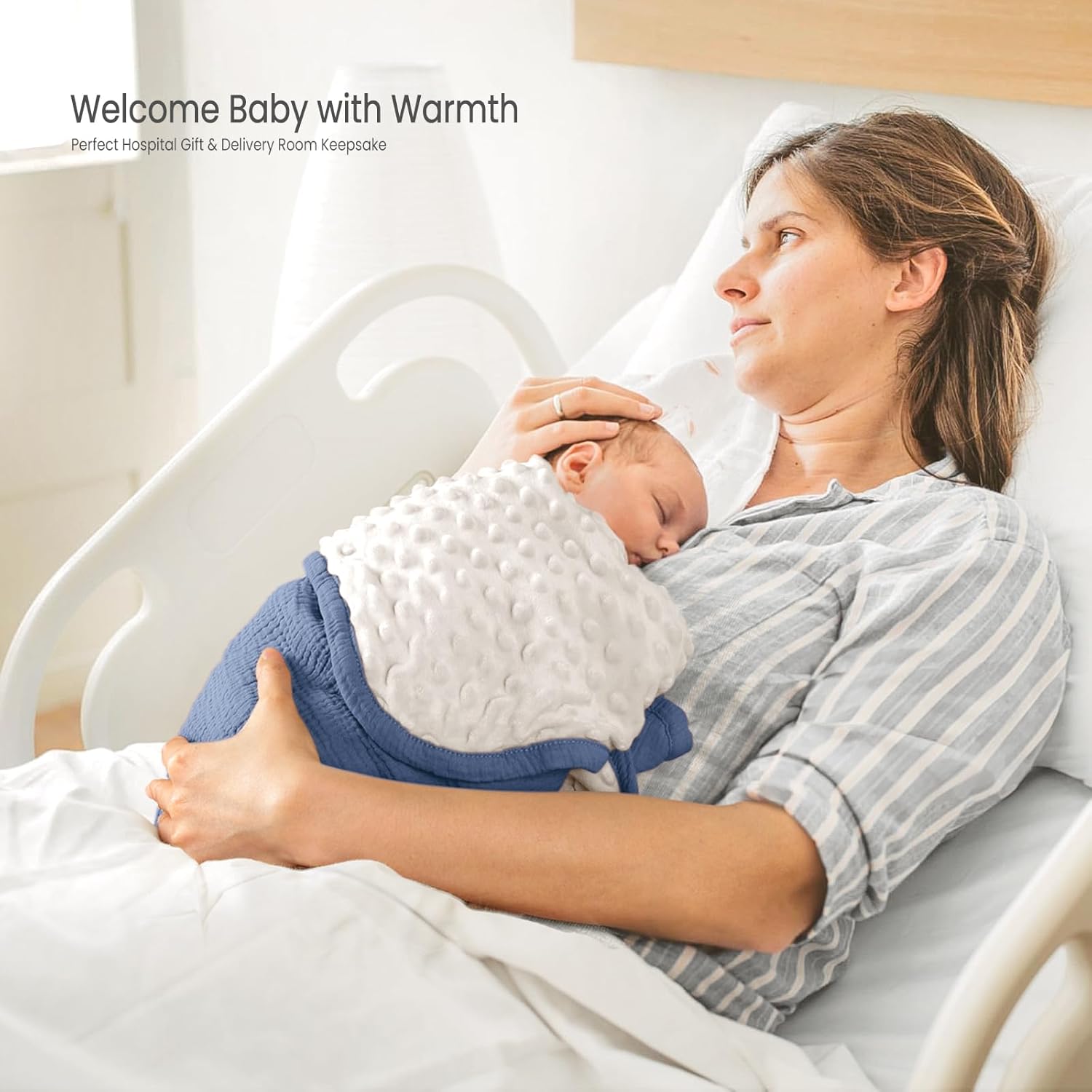 lulumoon Baby Blanket for Newborn Receiving: Minky Dot & Muslin Lightweight - Thermal Blanket Gift for Baby Shower & Hospital Welcoming 30"x40"(Blue)