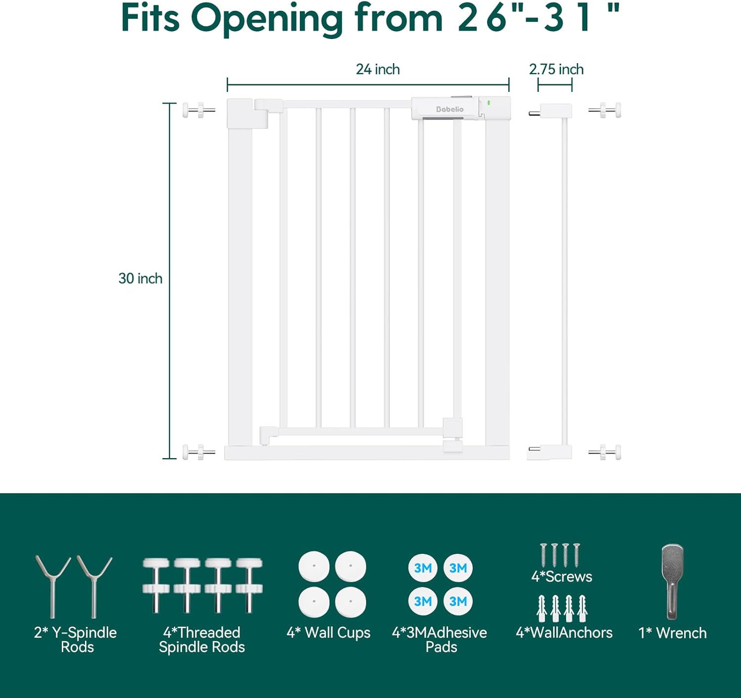 BABELIO Baby Gate for Doorways and Stairs, 26-31" Pet Gate with Wide Walk Thru Door and Lock Indicator, No Drill Pressure Mounted Safety Gate with Double Lock and Self-Closing, White
