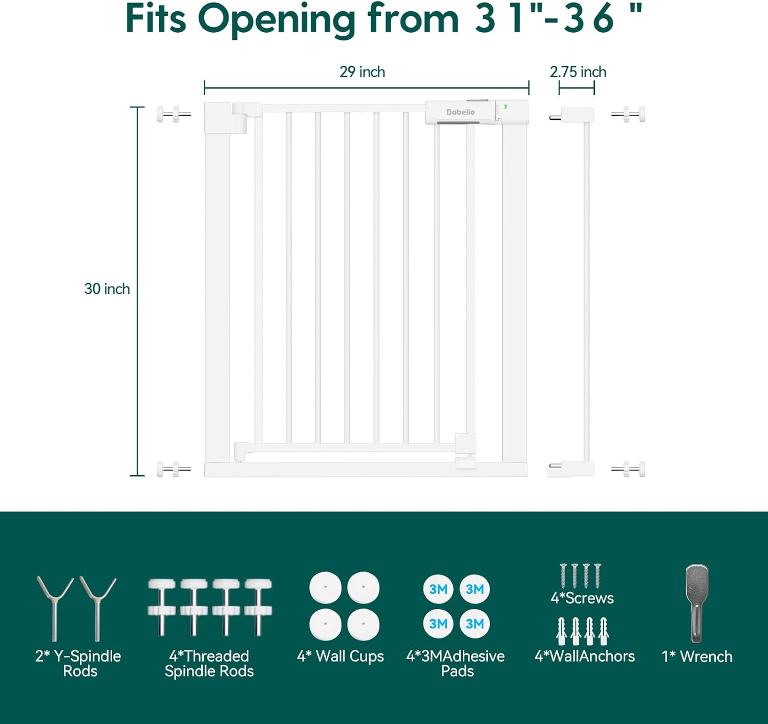 BABELIO Baby Gate for Doorways and Stairs, 31-36" Pet Gate with Wide Walk Thru Door and Lock Indicator, No Drill Pressure Mounted Safety Gate with Double Lock and Self-Closing, White