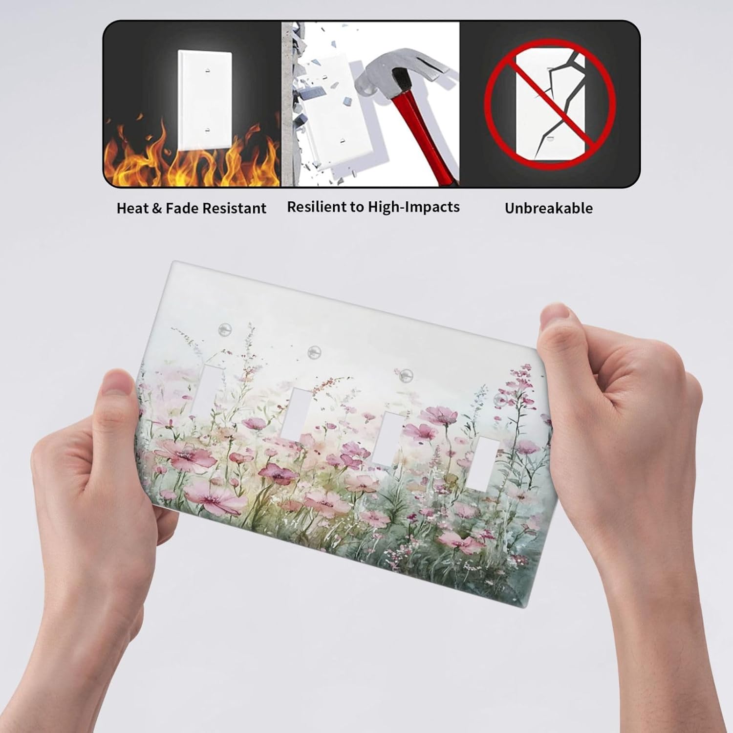 Light Switch Covers Wildflower Botanical Watercolor Floral Quad Toggle Electrical Faceplate 4 Gang Wall Plate Decorative Switch Plates For Bed Room Living Room Decor