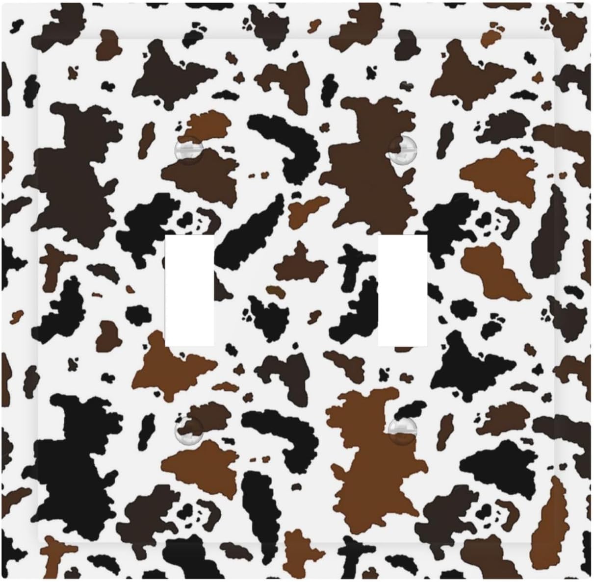 Decorative Switch Plates Rustic Cowhide Highland Cow Milk Cow 2 Gang Double Toggle Outlet Light Switch Cover Wall Plate Electrical Faceplate For Farmhouse Home Decor