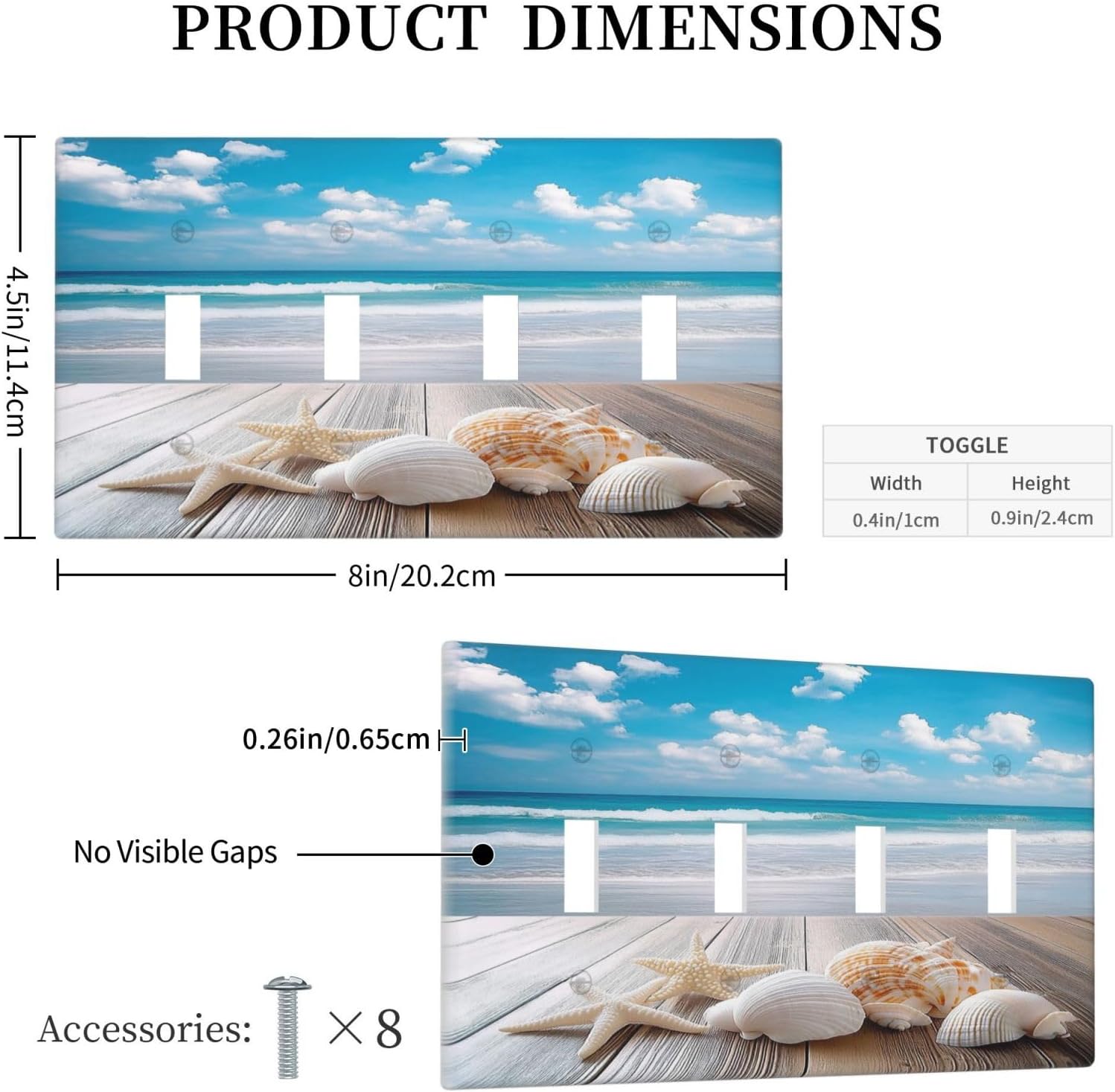 Light Switch Covers Beach Waves Brown Wood Starfish Shells Quad Toggle Electrical Faceplate 4 Gang Wall Plate Decorative Switch Plates For Bathroom Living Room Decor