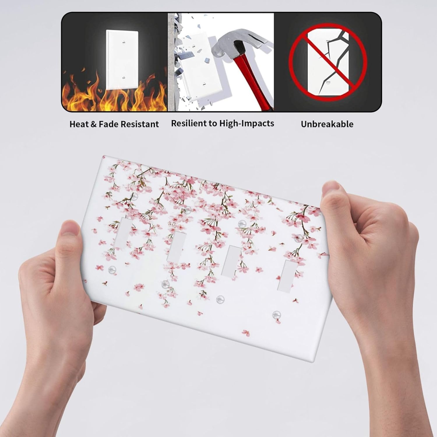Light Switch Covers Sakura Plant Floral Pink Flowers Quad Toggle Electrical Faceplate 4 Gang Wall Plate Decorative Switch Plates For Bed Room Living Room Decor