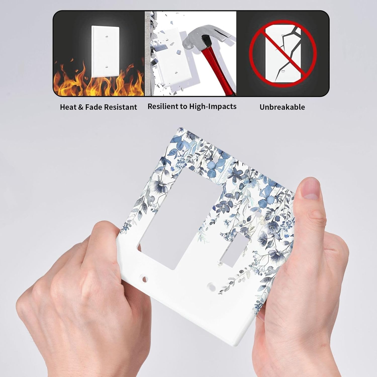Outlet Covers Light Blue Watercolor Leaves Plant With Floral 1 Toggle 1 Rocker Combination Decorative Wall Plate Electrical Switch Plates Light Switch Cover Plate for Bedroom Bathroom Decor