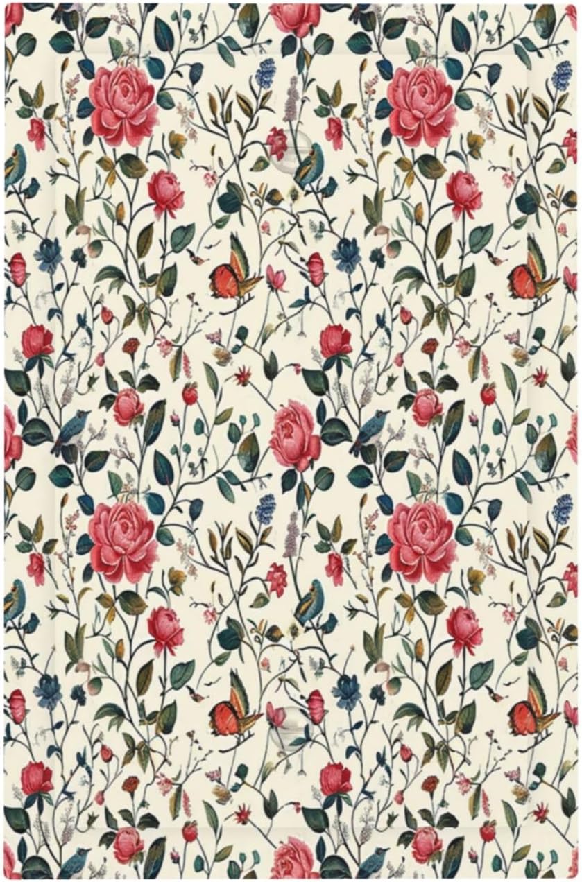 Light Switch Cover Plate Vintage Flowers Rose Leaf Bird Butterfly 1 Gang No Device Blank Electrical Wall Plates Faceplate Decorative Switch Plate for Bedroom living Room Decor