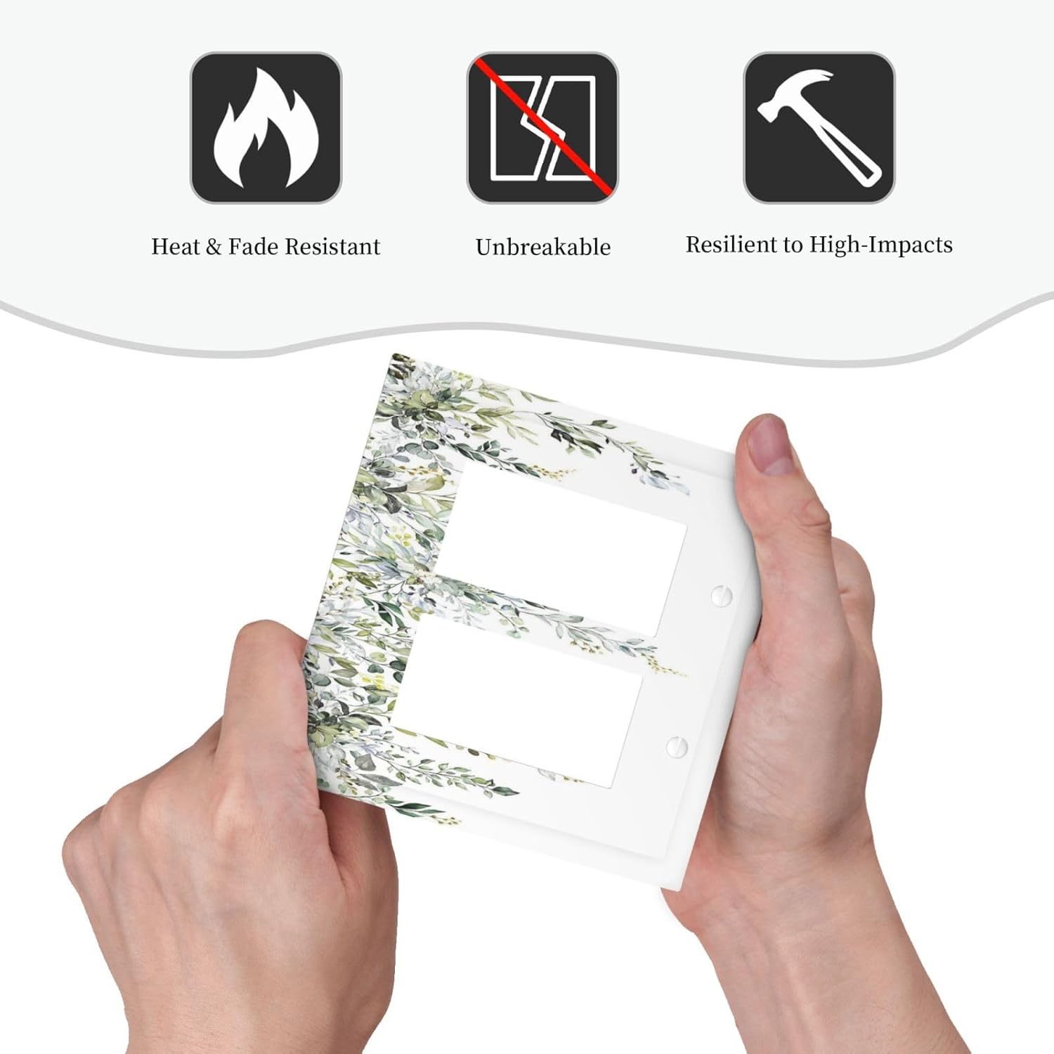 Decorative Outlet Covers Boho Farmhouse Flower Leaf Sage Green 2 Gang Double GFCI Rocker Electrical Wall Panels Light Switch Cover Plate for Bedroom Cabin Decor
