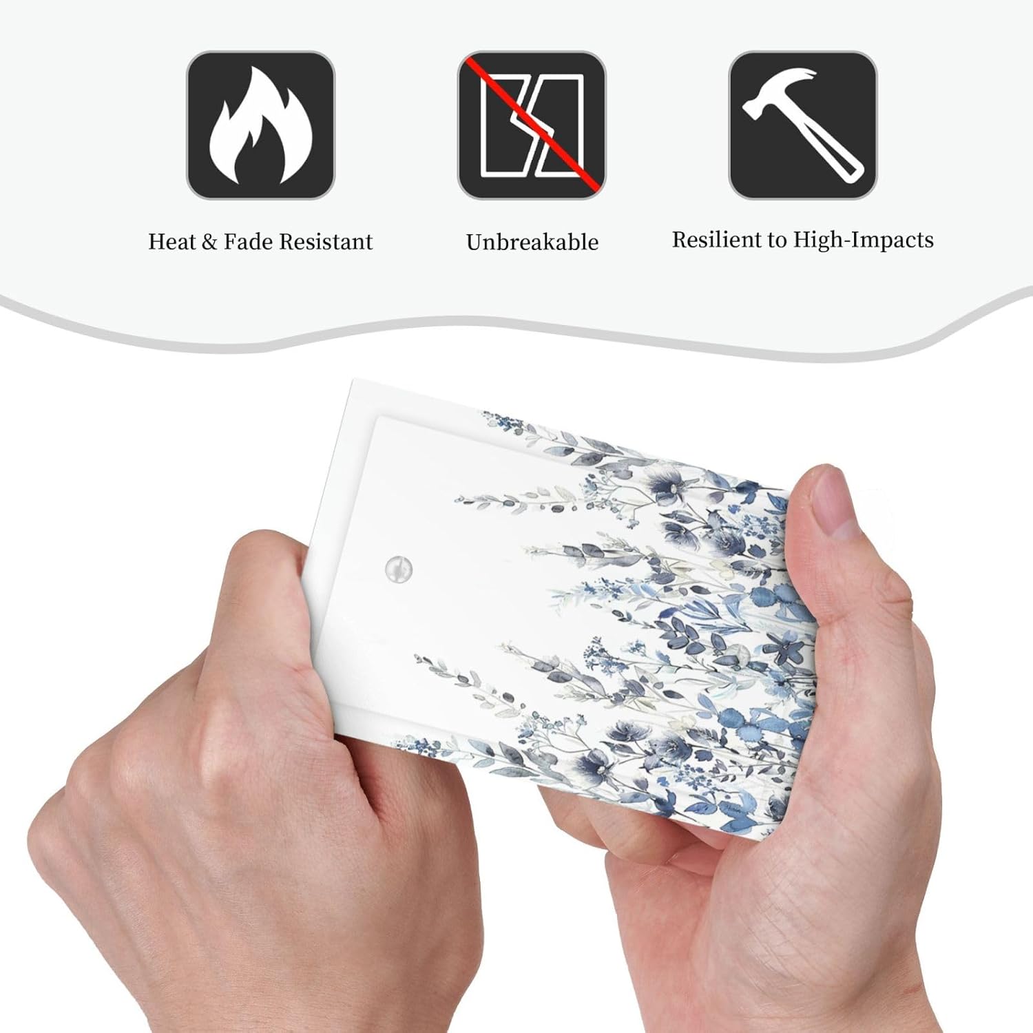 Light Switch Cover Plate Light Blue Watercolor Leaves Plant With Floral 1 Gang No Device Blank Electrical Wall Plates Faceplate Decorative Switch Plate for Bedroom Bathroom Decor