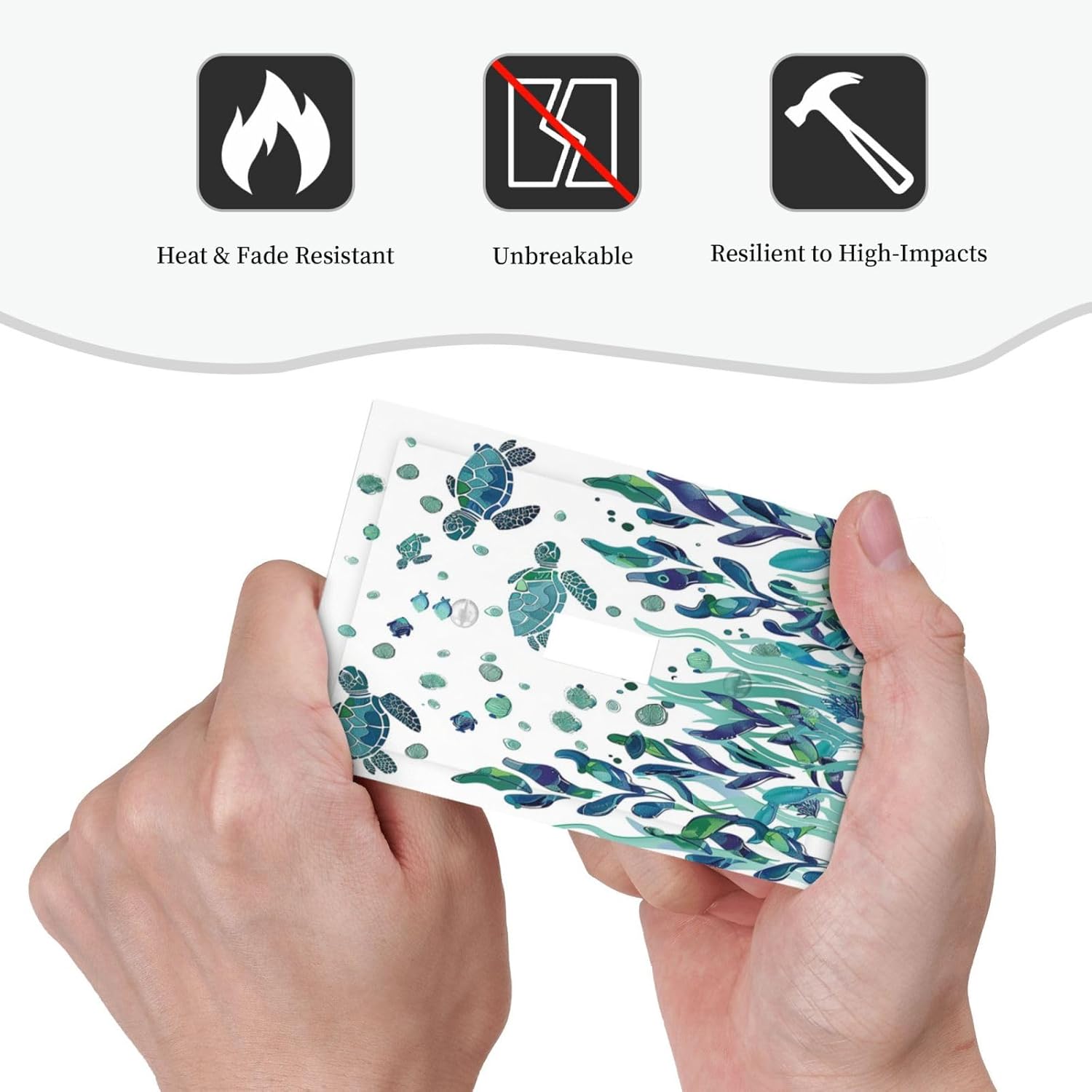 Decorative Light Switch Cover Vibrant Turtle Seagrass Watercolor Painting 1 Gang Single Toggle Device Electrical Faceplate Switchplates Decorator Outlet Wall Plate for Bathroom living Room