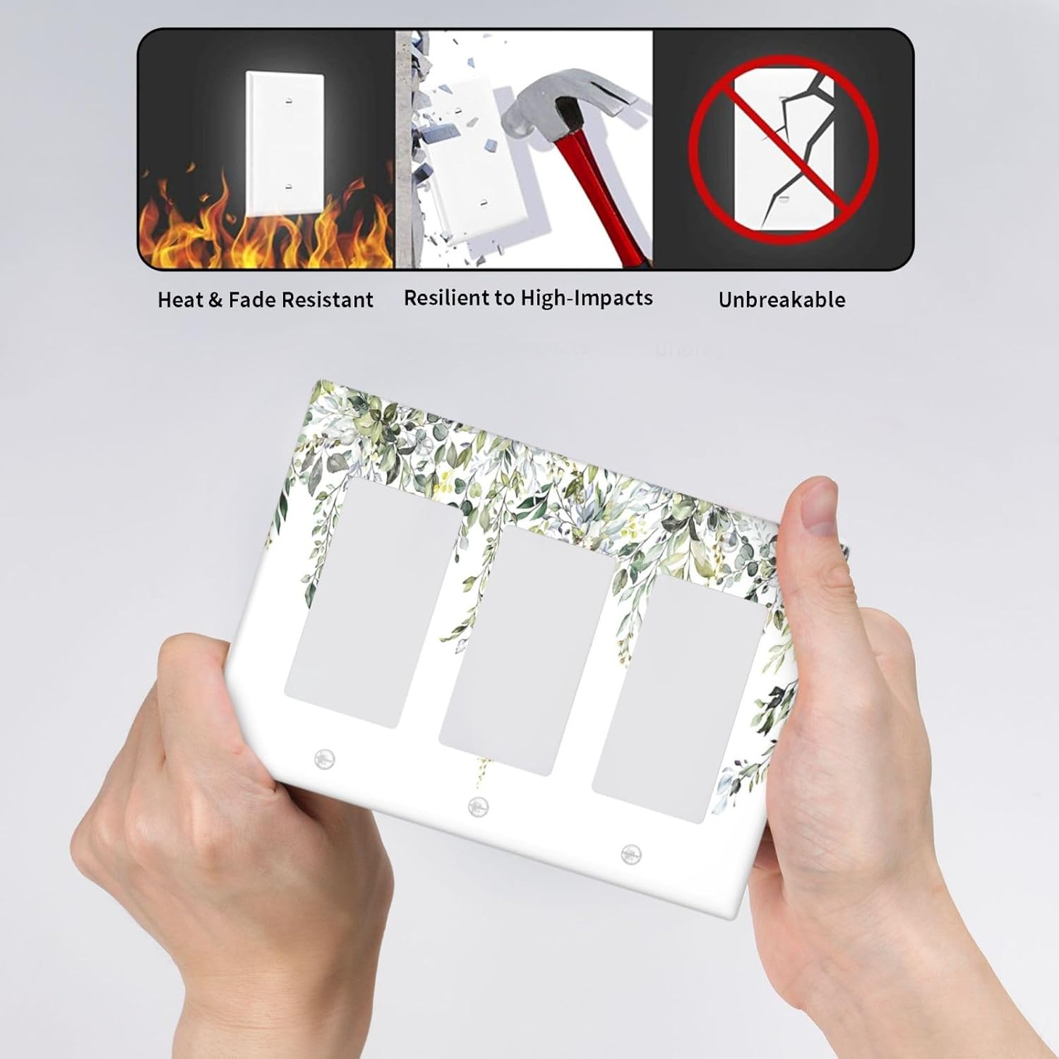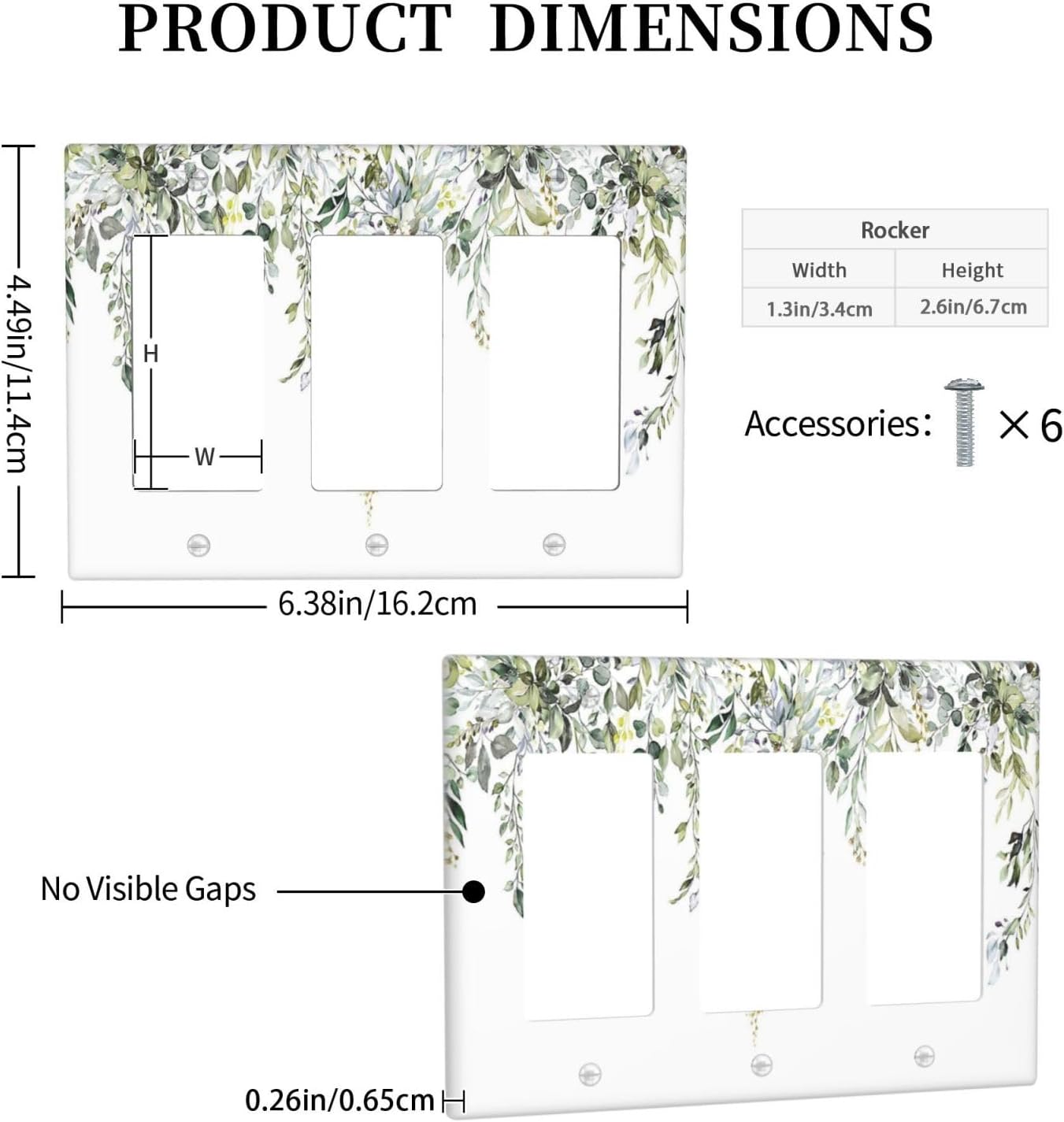 Light Switch Covers Boho Farmhouse Flower Leaf Sage Green 3 Gang Rocker Electrical GFCI Decorative Triple Outlet Wall Plate Cover Switchplate for Bedroom Cabin Decor