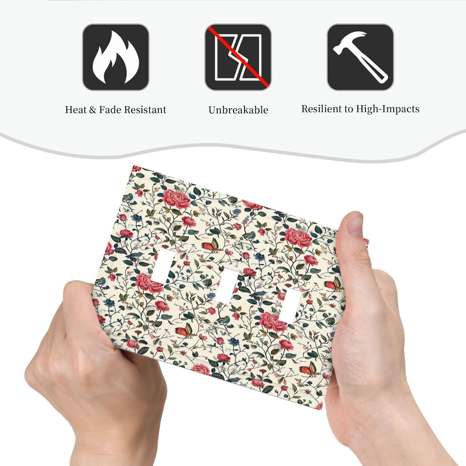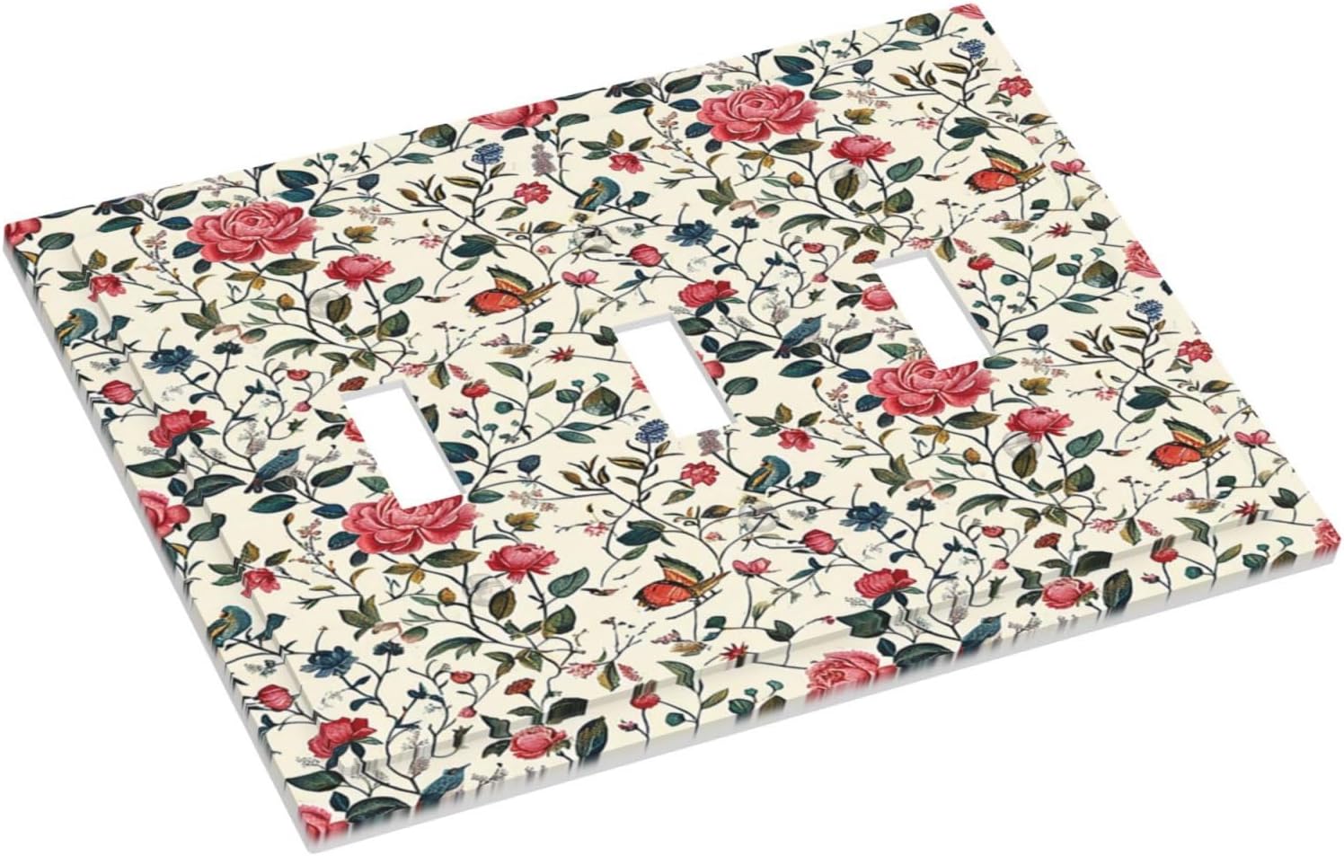 Decorative Switch Plates Vintage Flowers Rose Leaf Bird Butterfly 3 Gang Wall Plate Triple Toggle Light Switch Cover Faceplate Electrical Wall Panels for Bedroom living Room Decor