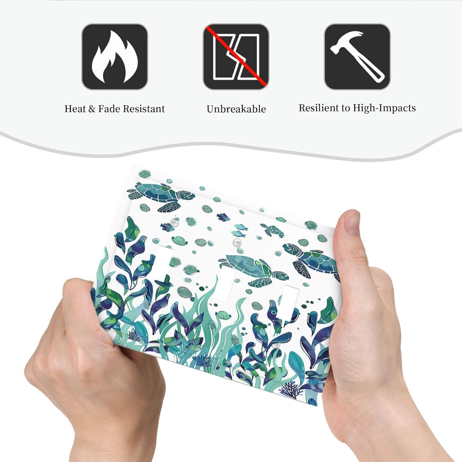 Decorative Switch Plates Vibrant Turtle Seagrass Watercolor Painting 3 Gang Wall Plate Triple Toggle Light Switch Cover Faceplate Electrical Wall Panels for Bathroom living Room Decor