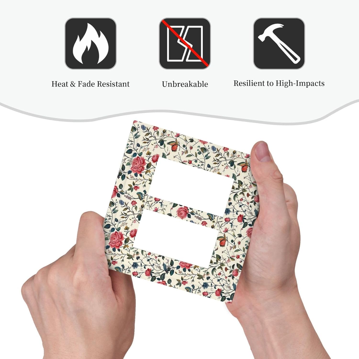 Decorative Outlet Covers Vintage Flowers Rose Leaf Bird Butterfly 2 Gang Double GFCI Rocker Electrical Wall Panels Light Switch Cover Plate for Bedroom living Room Decor