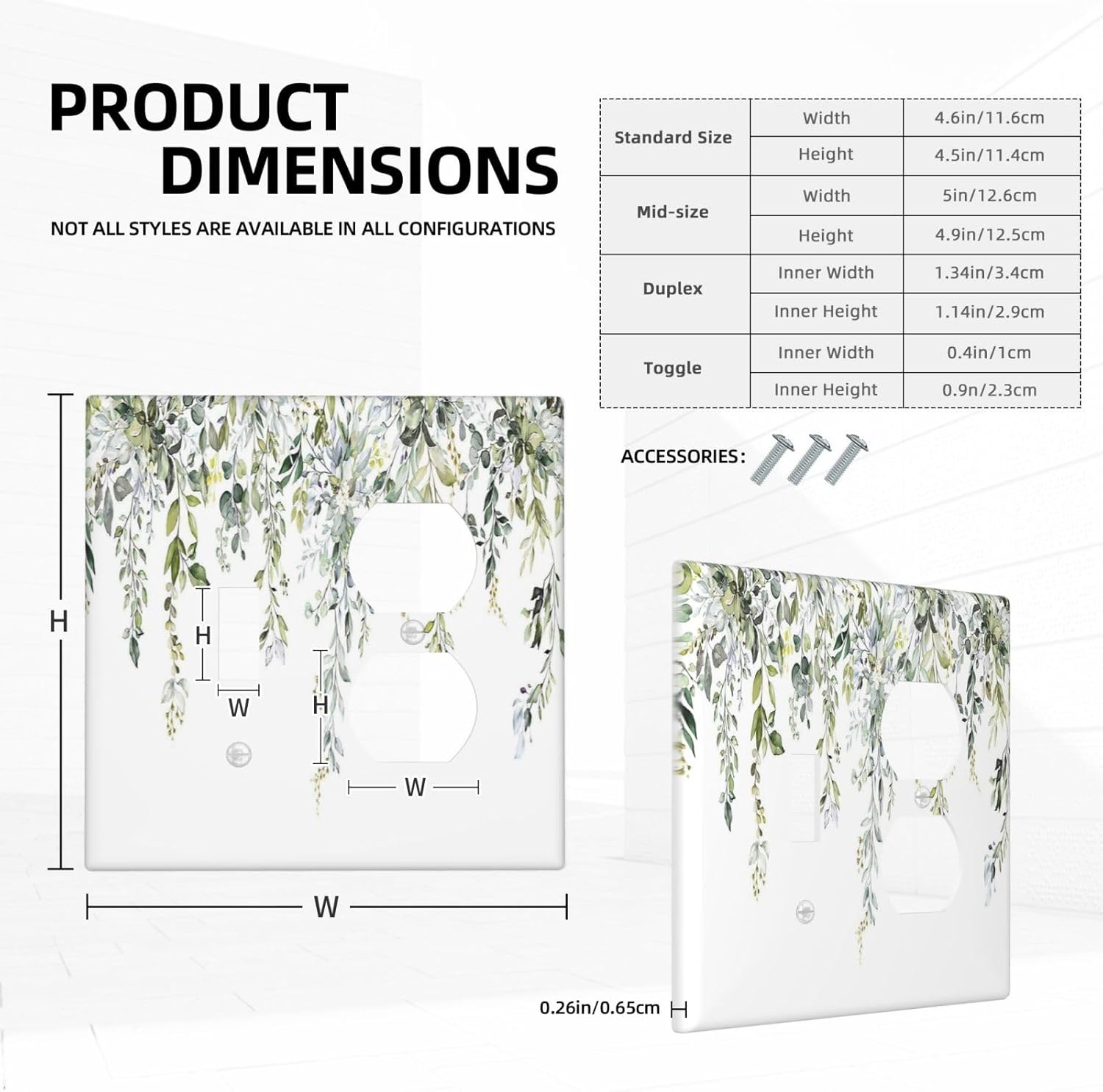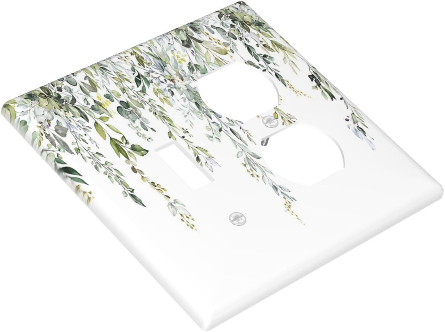 Wallplates Boho Farmhouse Flower Leaf Sage Green 1 Toggle 1 Duplex Switch Plate Electrical GFCI Faceplate Decorative Light Switch Covers for Bedroom Cabin Decor