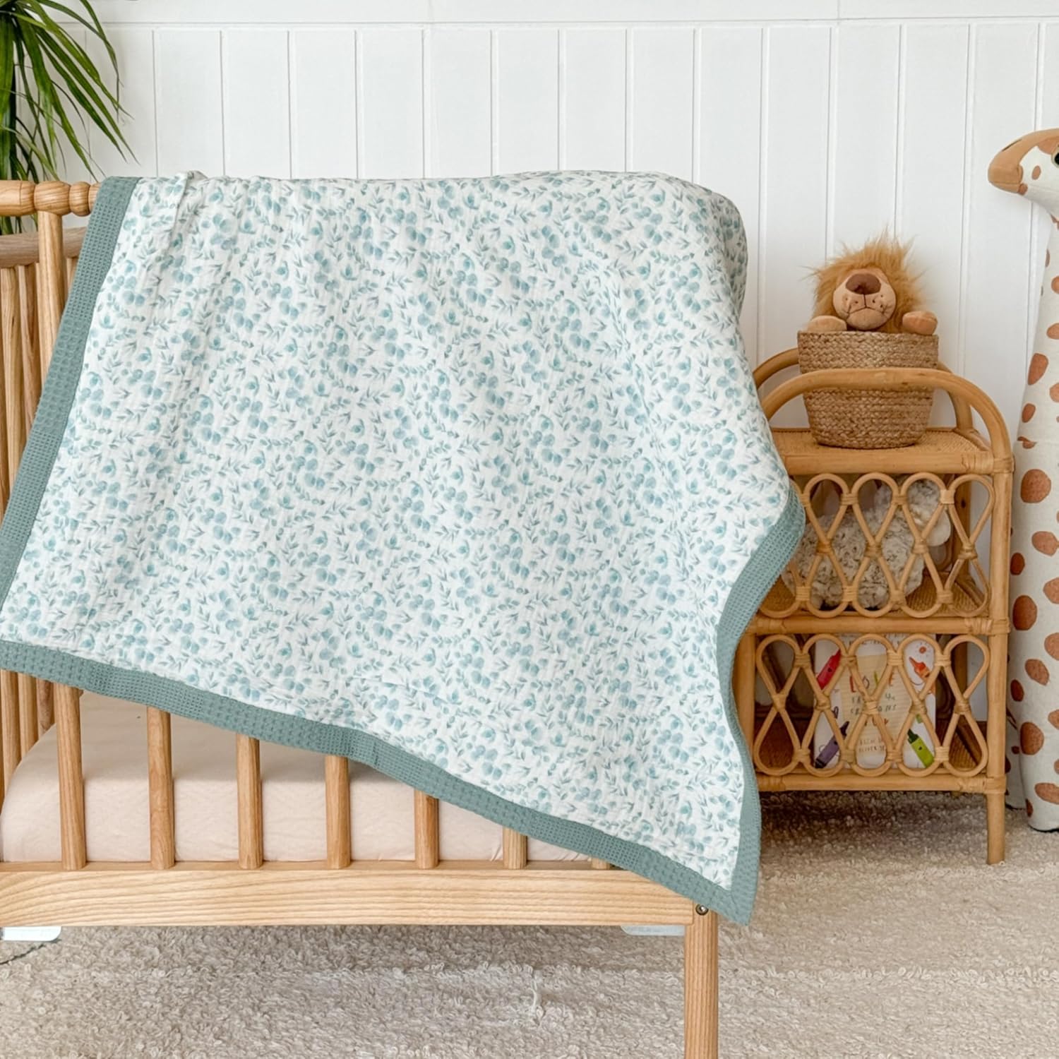 - ULTRA-SOFT ORGANIC COMFORT - Wrap your baby in the gentle embrace of our waffle baby blanket, crafted from 100% organic cotton, this floral print blanket offers a breathable and soothing touch against delicate newborn skin, ensuring a cozy and peaceful rest.