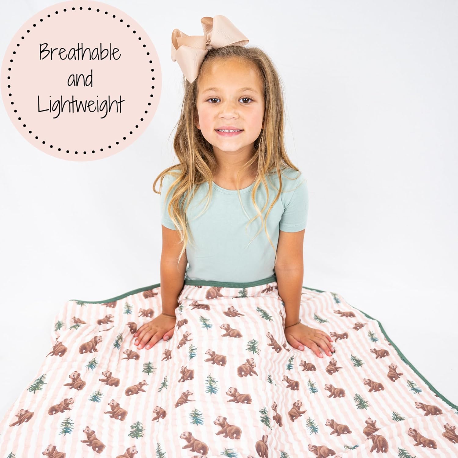 - BEAR PRINT - Adorable bear cubs roam this muslin quilt, creating a warm woodland retreat for your baby. A cozy baby blanket that pairs gentle texture with storybook charm