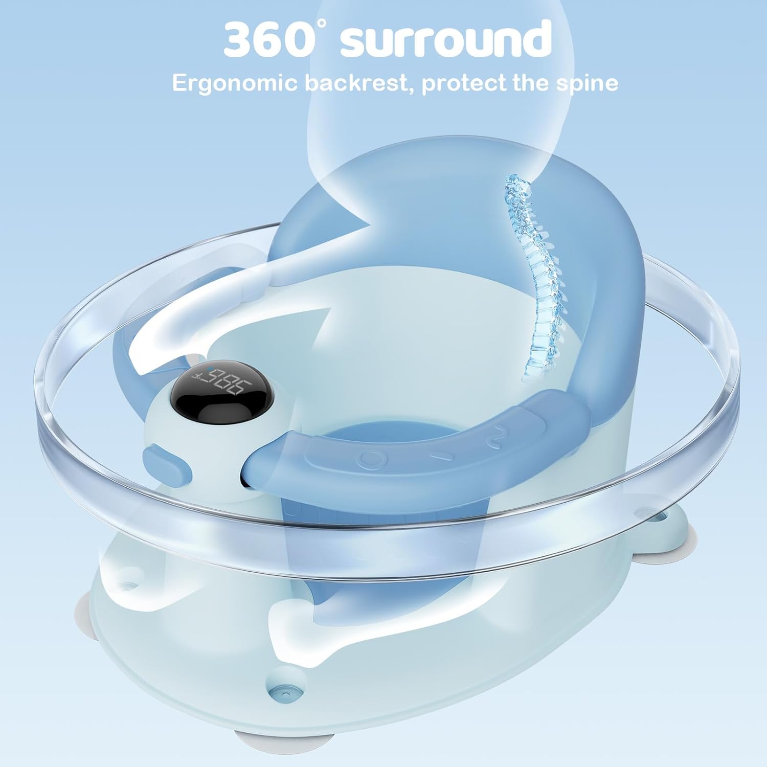 - Real-Time Temperature display: The touch-sensitive temperature display shows the water temperature in real time, So Parents don't have to worry about the water being too cold or too hot. Hurry up and use the Baby Bath Seat to give your baby a bath.