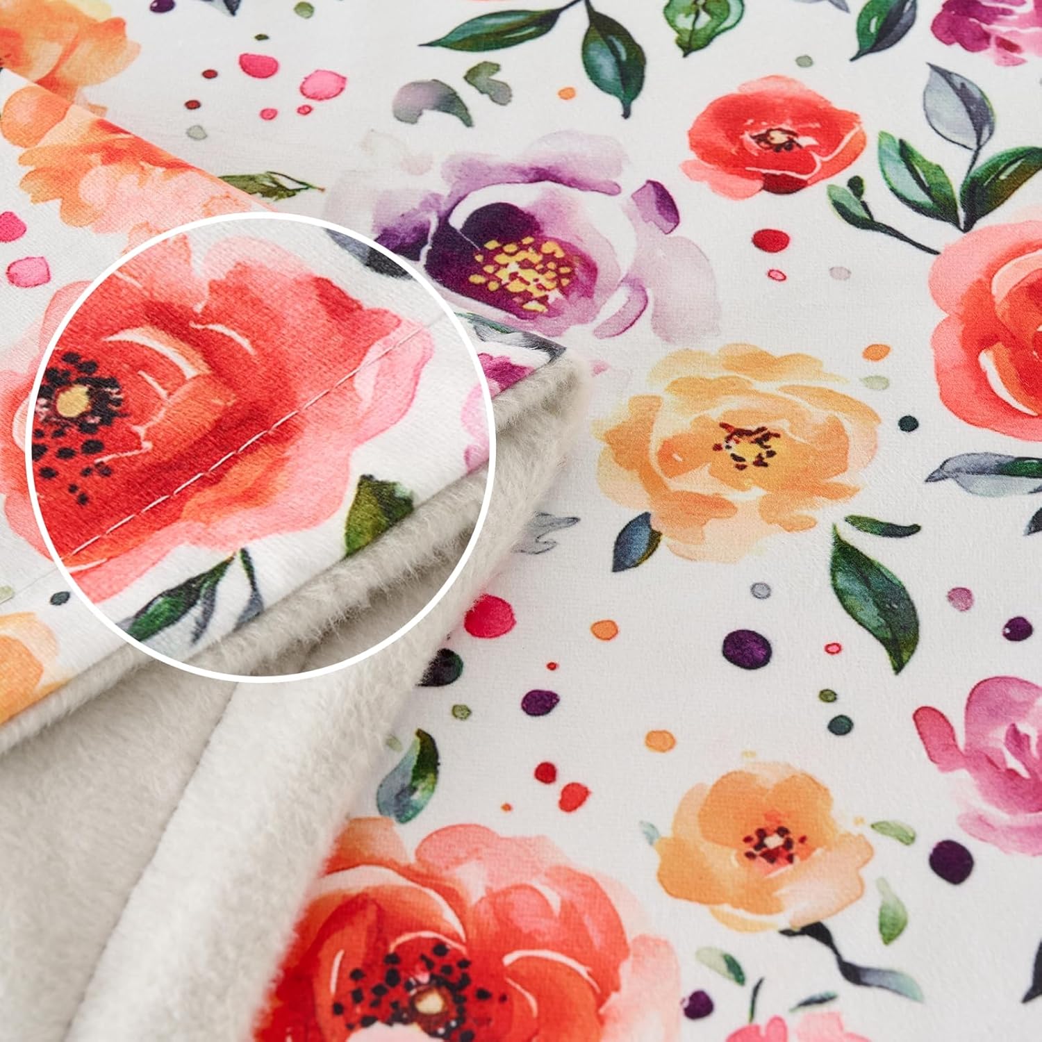 Baby Blanket 30x40 Inches Soft Double Layer Fleece Blanket with Beautiful Flower Print Gender Neutral Crib Blanket for Infant, Toddler, Newborn Baby Girl or Boy Shower Gift