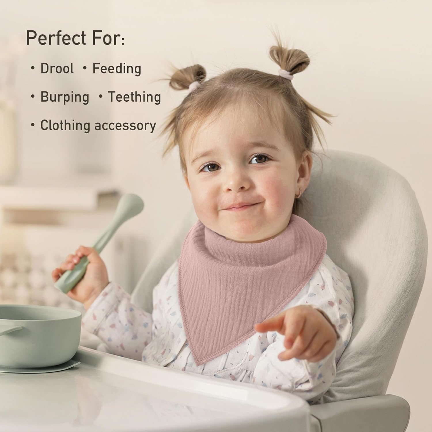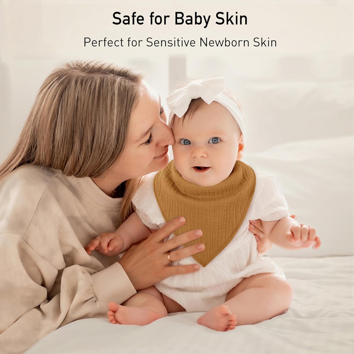 - Ideal Baby Gift:Each Soft Muslin Baby Bandana Drool Bib set is well made and neatly packaged. Baby muslin bibs are essential gifts, which will make a practical and thoughtful present at baby showers, on baby registries, for Christmas, housewarmings, or any special gifting occasion for new moms and dads.