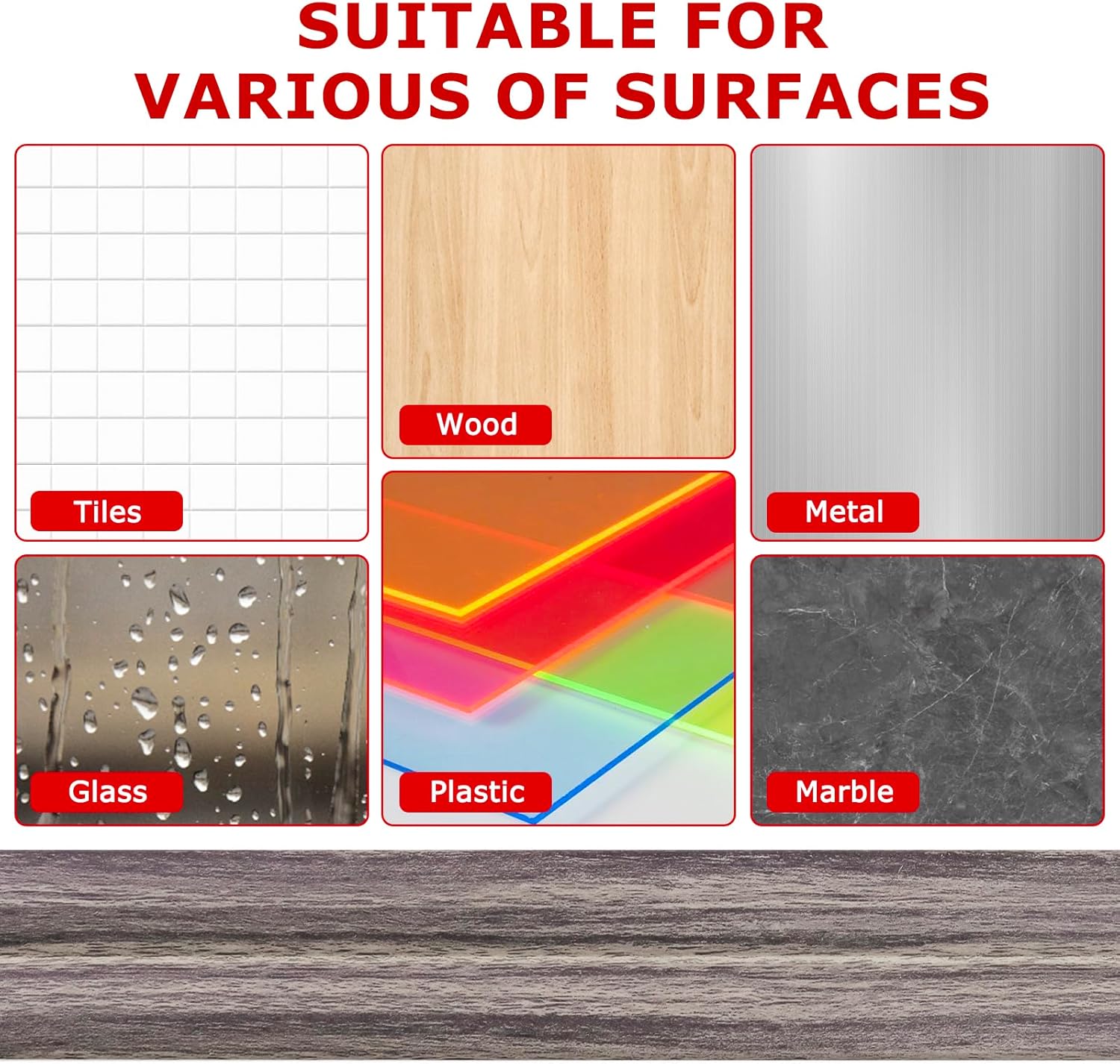- [Multiple Application] The versatility of our corner molding trim is essential as it can adhere seamlessly to various surfaces, including tiles, plastic, marble, metal, glass, wood, and smooth walls. This makes it suitable for use in bathrooms, bedrooms, living rooms, kitchens, offices, toilets - essentially anywhere you need added protection or decorative enhancement.