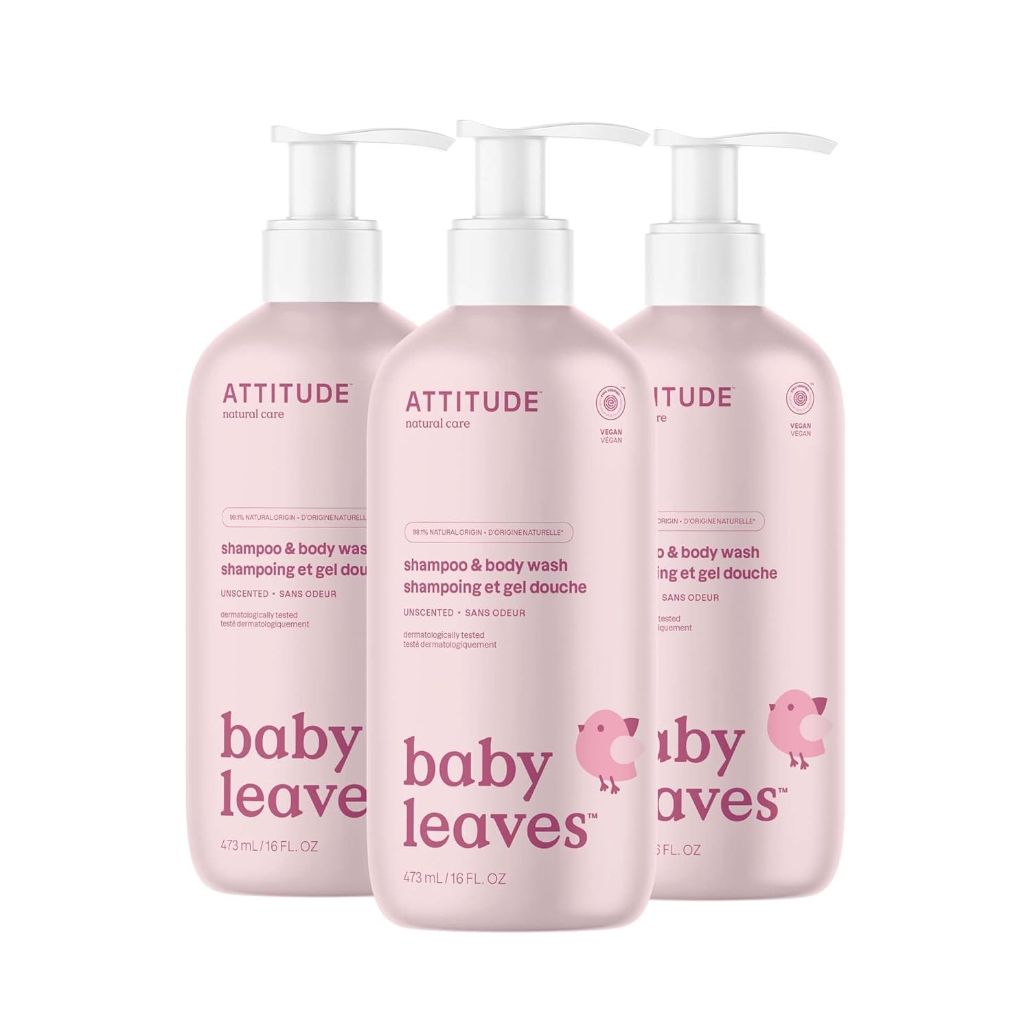 ATTITUDE 2-in-1 Shampoo and Body Wash for Baby, EWG Verified, Dermatologically Tested, Vegan, Unscented, 16 Fl Oz (Pack of 3)