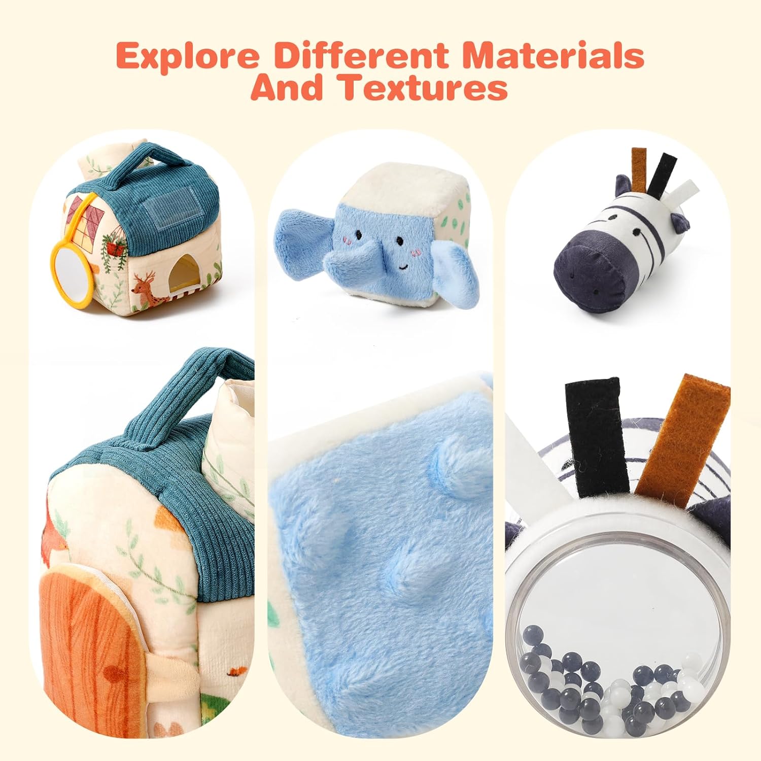- SAFE, DURABLE & IDEAL GIFT: Our toys have passed CPC safety certification. Crafted from soft woven cloth, with a soft mirror feature. All parts are made of gentle materials, ensuring no sharp parts to harm your baby during play. Beyond safety, the diverse designs and play ways promote stage & skill development for babies aged 4- 18 months. Far superior to ordinary toys, it serves as an excellent sensory toy and perfect gift choice for birthdays and Christmas, bringing joy and growth to little ones