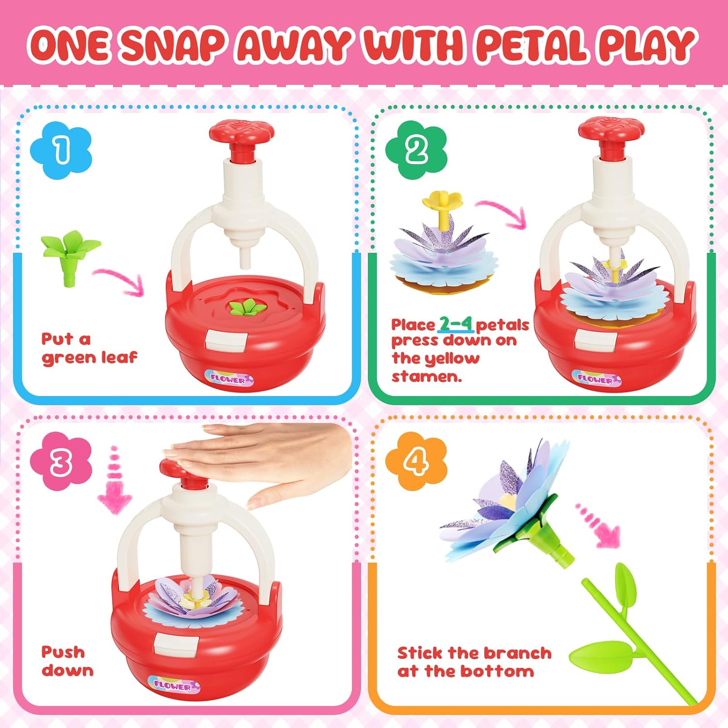 - Complete Toy Flower Bouquet Kit with Storage Function: Flower making toy package includes: flower making machine, petal, stems, stamen, receptacle, vase, bouquet wrapping paper, bases and step-by-step visual guides. Fabric flower making kit designed for collaborative play, encouraging quality time between parents and children through shared creative projects.