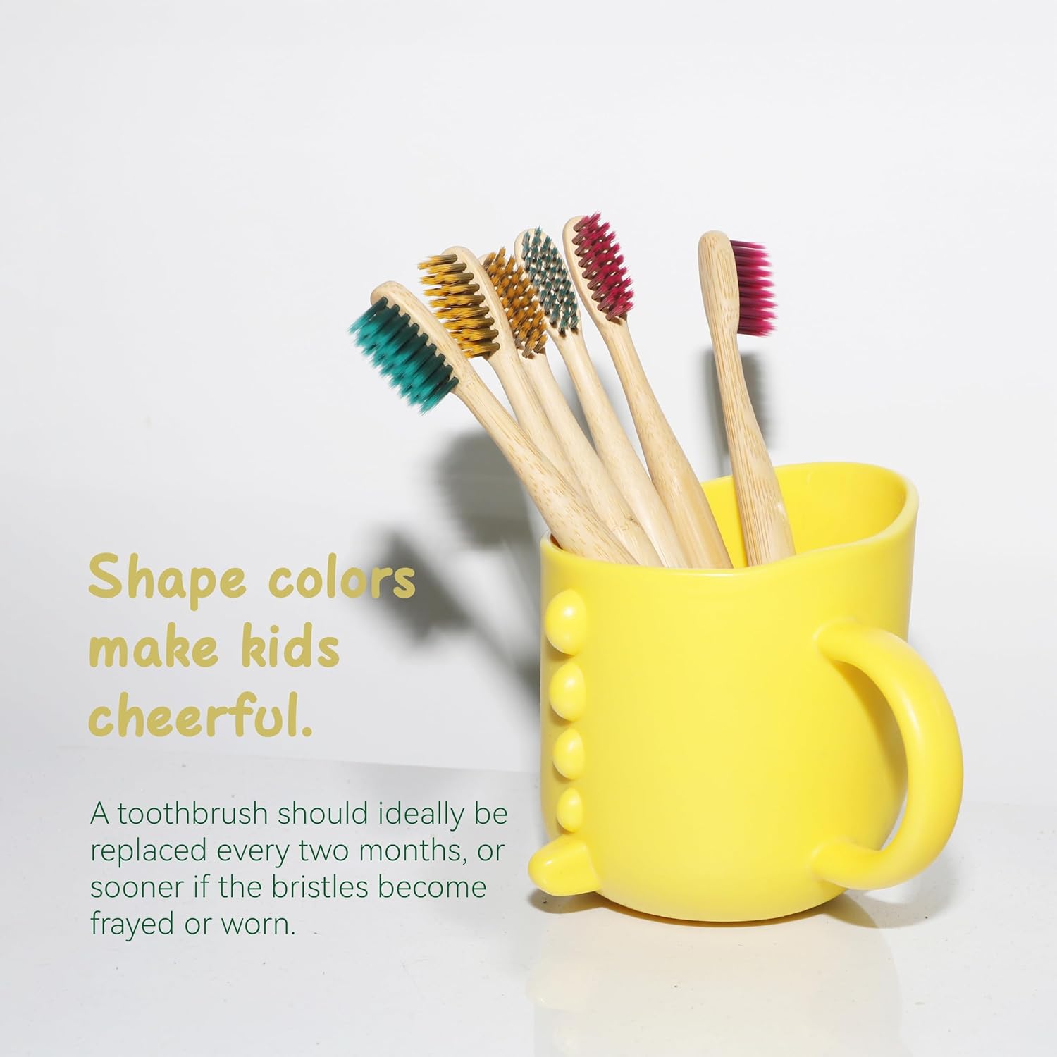 Children Bamboo Toothbrushes for 3 y+ Tots, BPA Free Bristles, Medium Soft, 6 PCS Bamboo Toothbrush for Dental Hygiene, Compostable and Sustainable, Classic Rounded Handle for Easy Grip