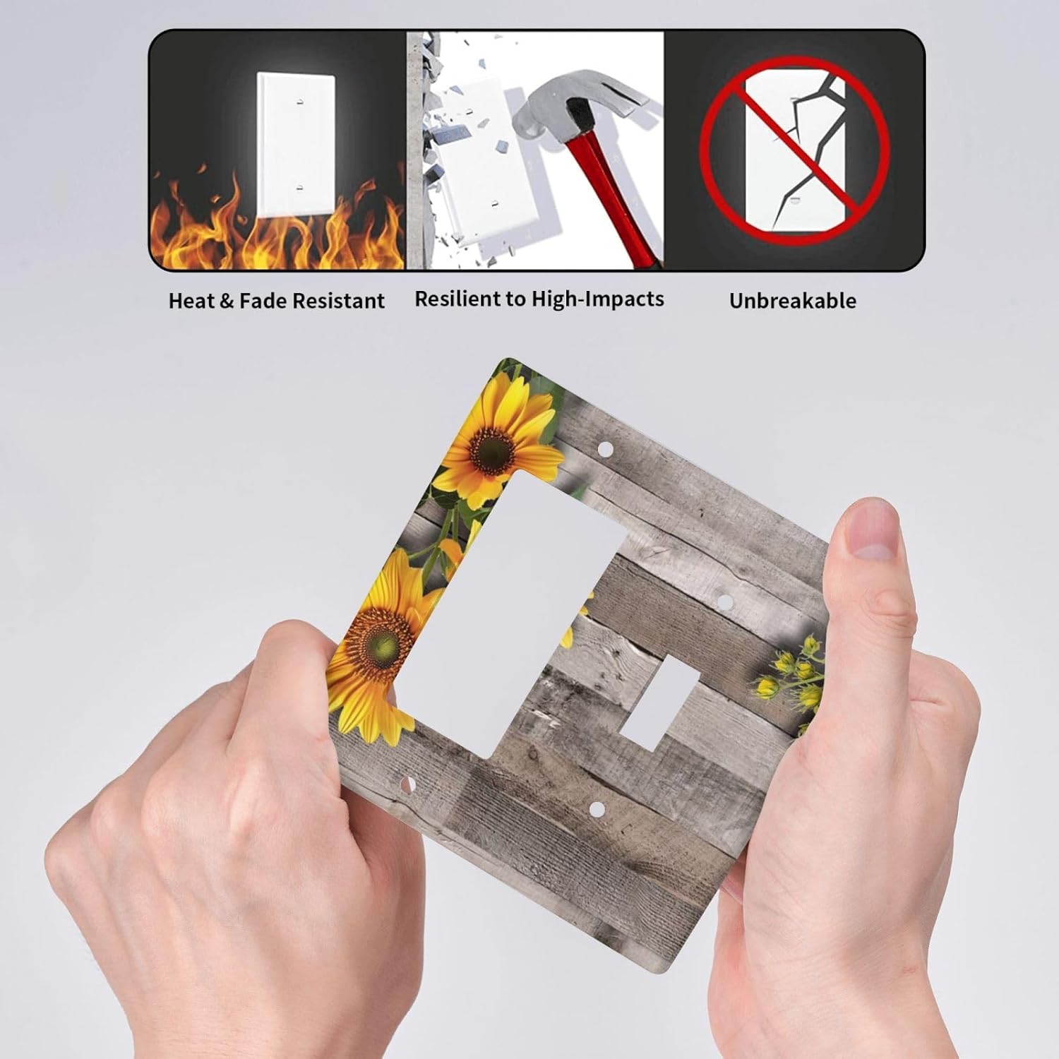Sunflower Rustic Brown Gray Wood Outlet Covers 1 Toggle 1 Rocker Combination Decorative Wall Plate Electrical Switch Plates Light Switch Cover Plate for Farmhouse Home Decor