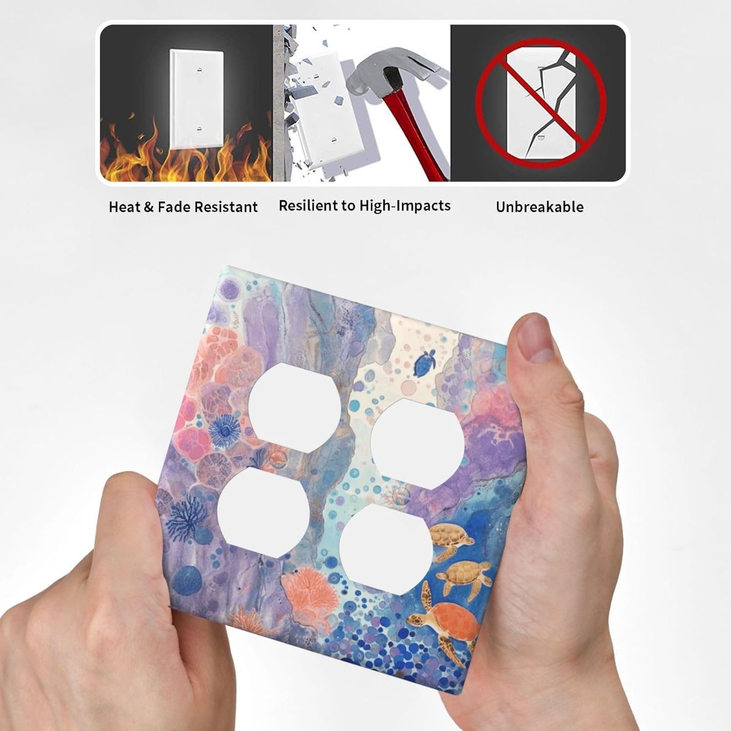 Turtle Coral Fish Watercolor Colorful Underwater World Outlet Covers 2 Gang Double Duplex Decorative Light Switch Covers Electrical Wallplates Socket Faceplate for Kids Room Home Decor