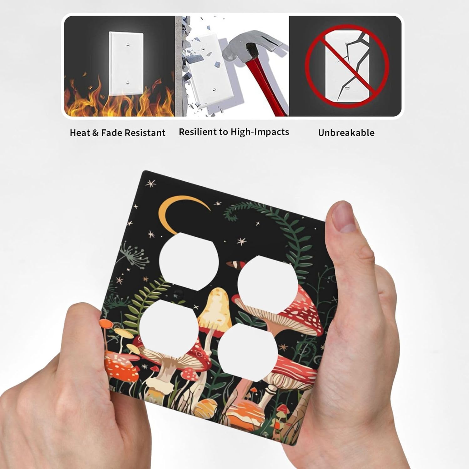 Moon Star Red Mushroom Forest Butterfly Green Plant Outlet Covers 2 Gang Double Duplex Decorative Light Switch Covers Electrical Wallplates Socket Faceplate for Kids Room Home Decor
