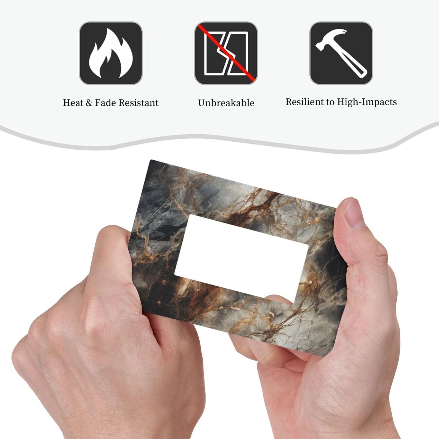Brown Marble Granite Golden Lines Print Decorative Outlet Covers 1 Gang Single Rocker Light Switch Cover Plate Wall Plates GFCI Faceplate for Bathroom Kitchen Decor
