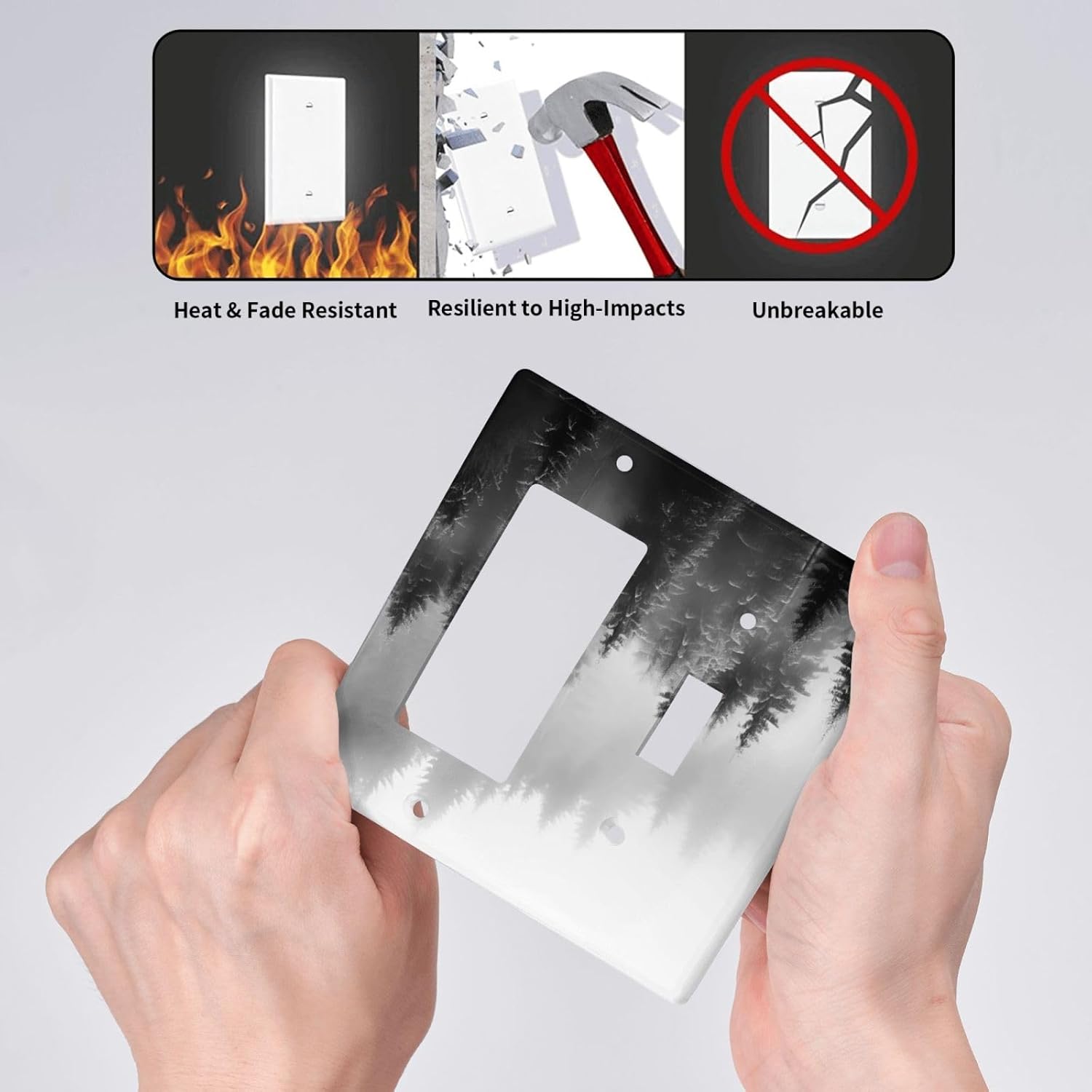 Foggy Forest Natural Scenery Retro Tree Pine Outlet Covers 1 Toggle 1 Rocker Combination Decorative Wall Plate Electrical Switch Plates Light Switch Cover Plate for Bed Room Living Room Decor