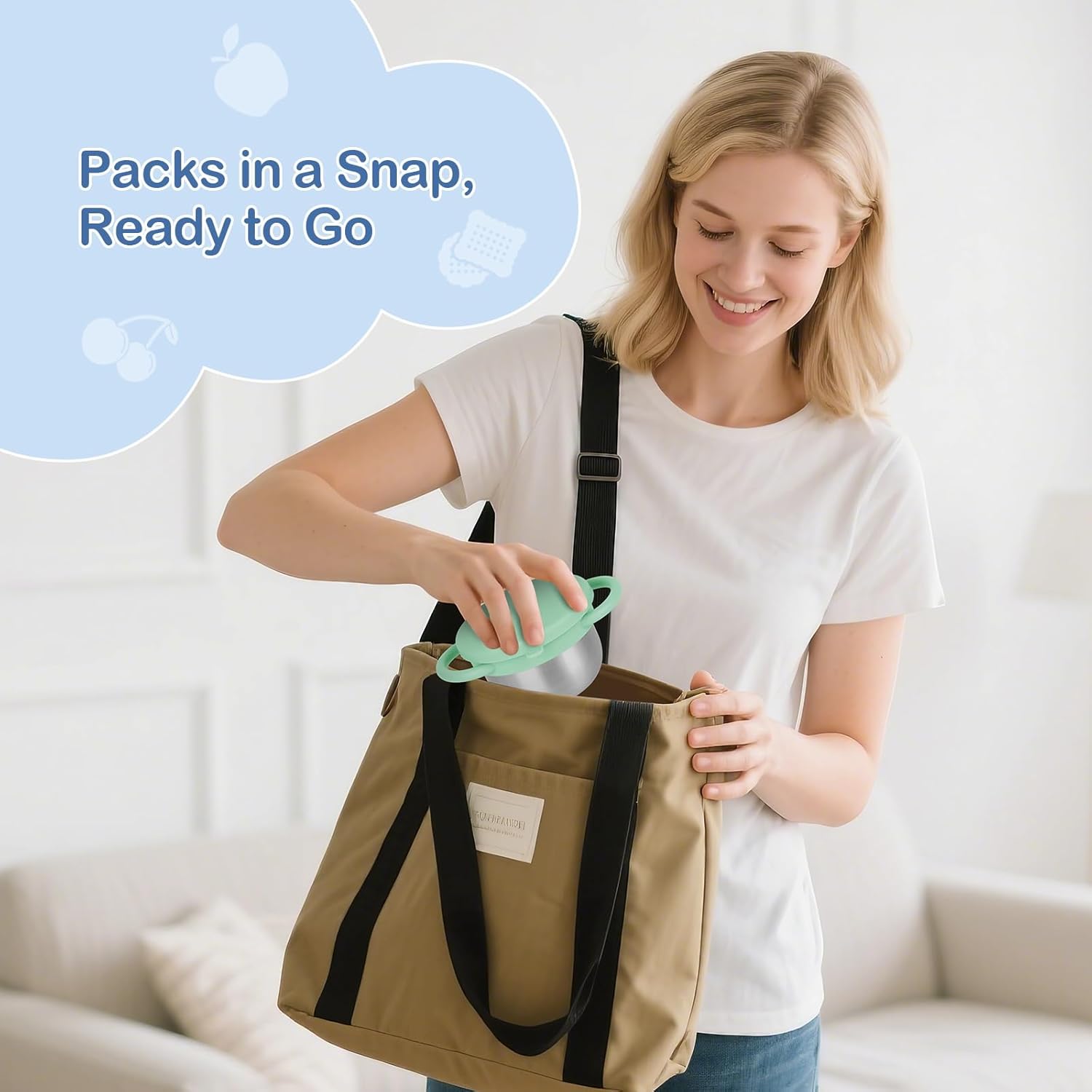 - Dual Easy-Grip Handles: Our snack cup features two soft, ergonomic handles that are lightweight and compact, allowing little hands to grip them securely and comfortably. Whether at home, in the car, or during your baby's adventures exploring the world, the easy-grip design helps develop hand-eye coordination, reduces slipping, and gradually fosters the good habit of independent eating.