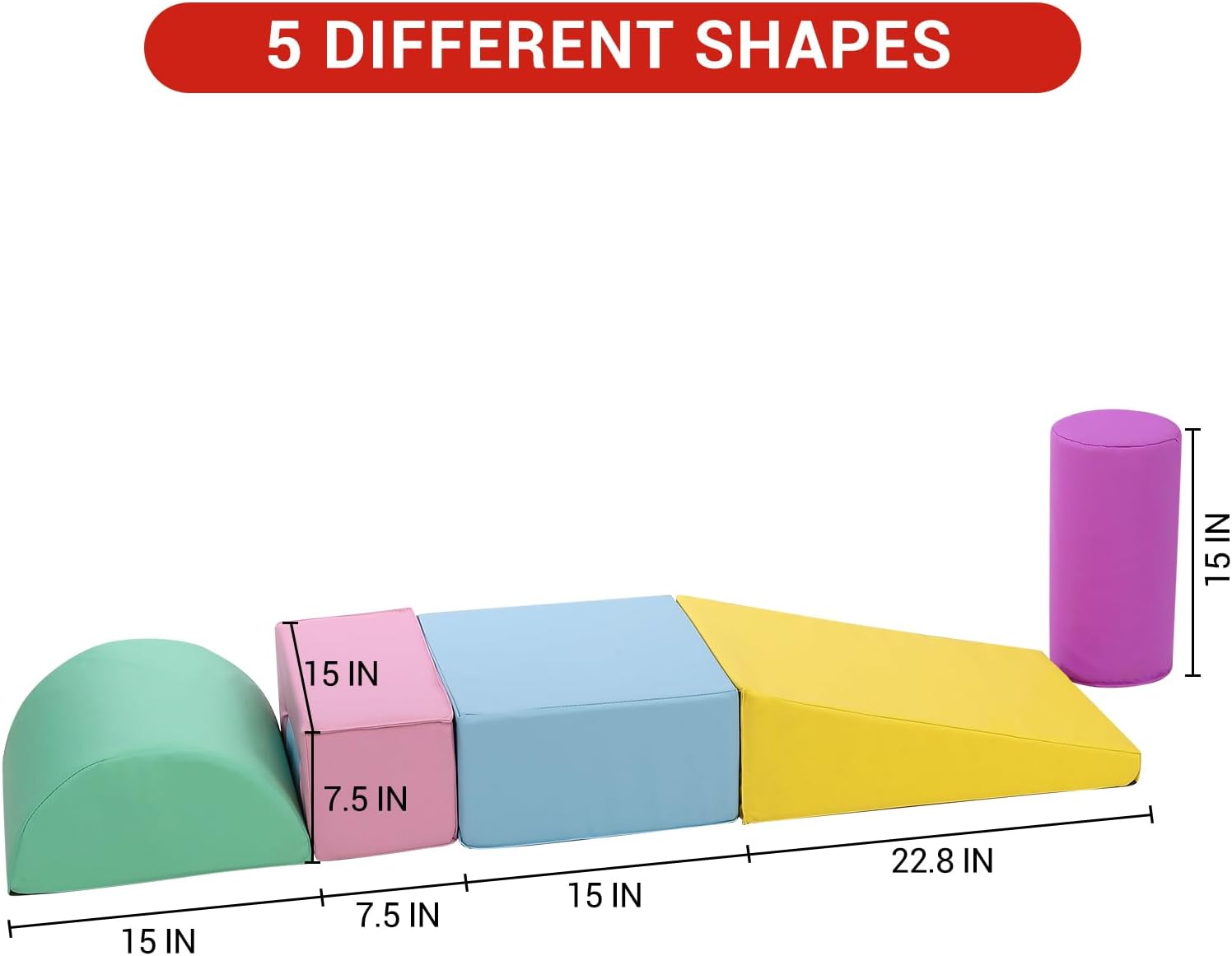 - 6-Piece Set: Includes triangle, large cuboid, small cuboid, half moon, arch-shaped and cylinder. Designed for ages 1–3, this climbing toy sparks imagination with endless configurations, letting kids enjoy climbing, stacking, and rearranging shapes.